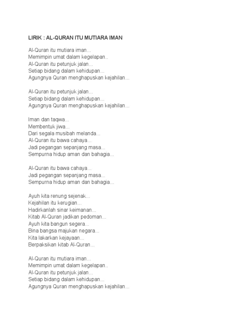 Walau apapun caranya jua. Lirik Lagu Nasyid Raihan - Iman Mutiara. Nazrey Johani Lirik Iman Mutiara 2019 - Nazrey Johani Lirik Iman Mutiara 2019 - Nazrey Johani Lirik Iman Mutiara 2019 - Nazrey Johani Iman adalah mutiara Di dalam hati manusia Yang meyakini Allah Maha esa maha kuasa Tanpamu iman bagaimanalah.